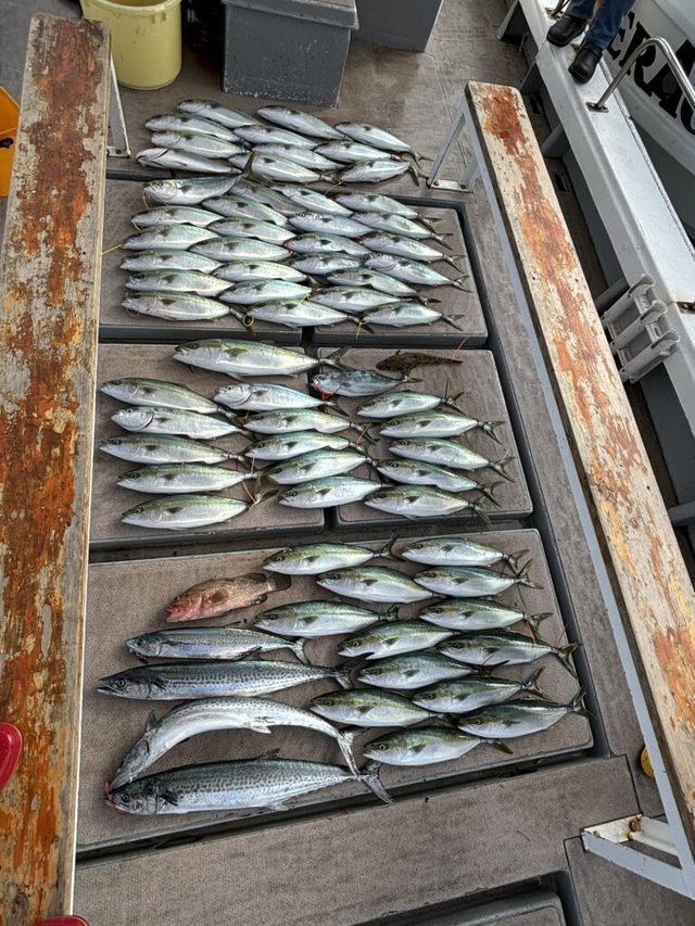 合計1匹 サゴシ(サワラ) 合計5匹 ハマチ 合計4匹 ジギング便。 船中10本。(サワラ1本。サゴシ5本。ハマチ4本) 竿頭様4本でした! なかなか、厳しくなってしまい申し訳ありませんでした。もう少し良い場所、やりやすい場所、探しておきます。 又ら明日からも頑張ります(^^)