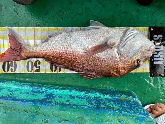 60~98cm 合計70匹 タチウオトップが77匹、真鯛は6、大型も上がっています。一つテンヤ、タイラバのどちらも釣れています。アオリイカはティップラン好調、船全体で44匹、明日まだまだアオリイカ半夜の空きございます。ネット予約なら直前でも大丈夫です、お早めにお願いします。笑。