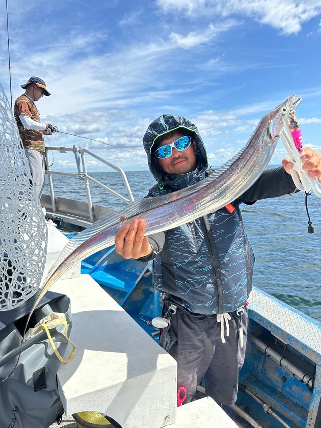 竿頭60匹 大潮。 ご乗船いただいた皆様、お疲れ様でございます。 <タチウオ便> ◾️テンヤ◾️ TOP60本、 2番手50本、 3番手45本、 季節も変わり早朝は肌寒くなってきましたので一枚羽織る物を準備いただいた方がよくなってきました。 日中はまだまだ暑い日もございますので、熱中症対策のため、飲み物を多めにお待ちいただき小まめな水分補給をお願いします。 本日は平日極ひろびろゆったり出船でした。 平日は定員を少なめに設定しておりますので、平日ひろびろゆったり便、お祭りも少なくオススメですよ。 開始時は二枚潮でテクニカルな感じでしたが、潮がよくなるに釣れてポロポロ、パラパラと終了まで釣れ続きました。 本日は最後まで頑張っていただきありがとうございましたm(__)m またの御乗船、心よりお待ちしております。