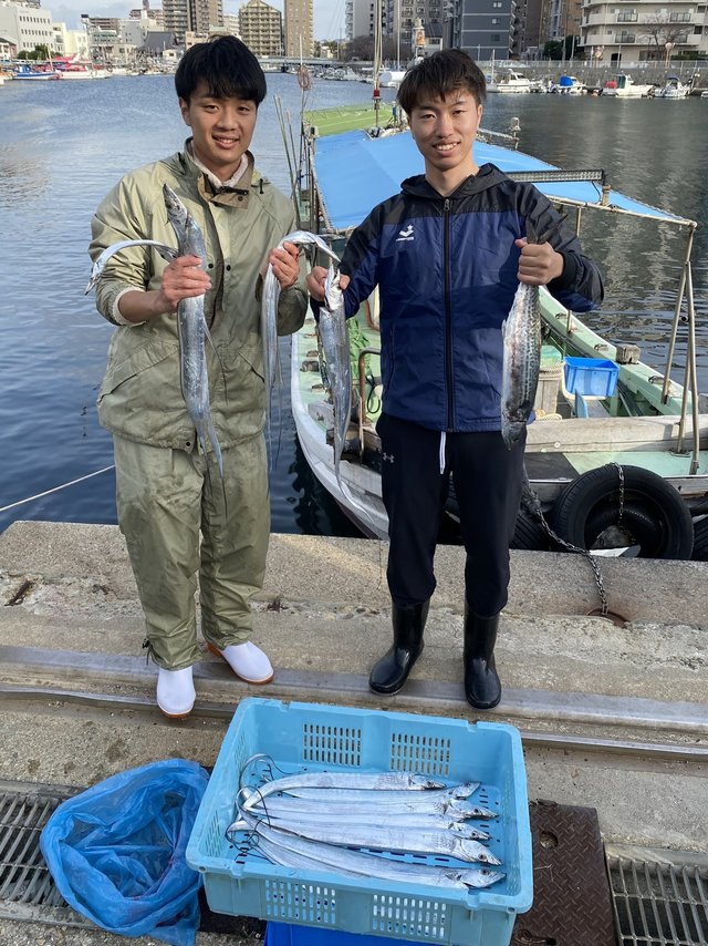 75~120cm 合計50匹 タチウオ洲本沖にて、大きくて太いのが釣れてます。ぜひお越しくださいね~。明日12/13タチウオ釣り空席たくさんありますので飛び入り歓迎!