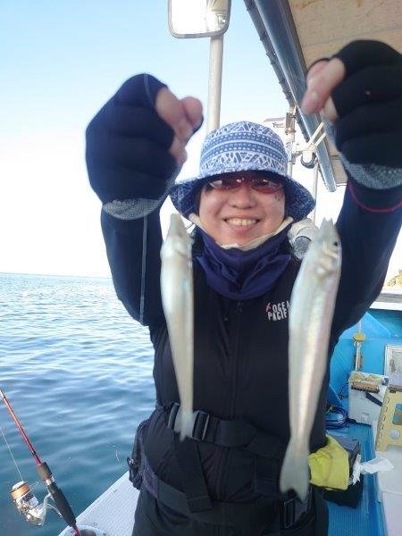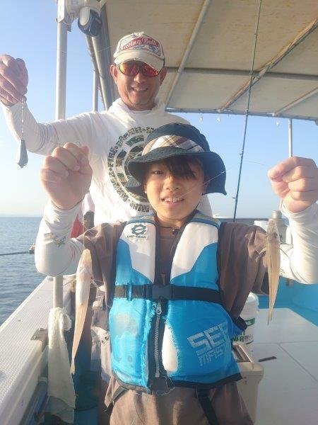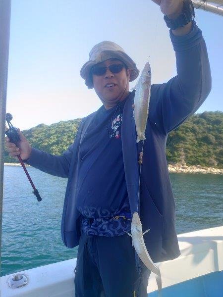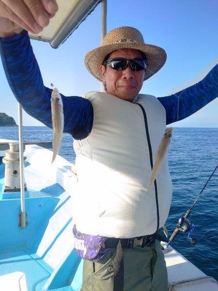 (ネズミゴチ)シロギス 20~67匹 コチ アジ チャリコ ガシラ トラギス 前日に続き、水温は17日の雨の影響で25℃と少し低め。 ですが今日は風が涼しく、波も穏やかで とても釣りやすい1日となりました。 底にいるシロギスにもアピールしやすい状況で 釣果は昨日よりUP。 1人あたり20〜67匹と楽しんでいただけました。 今日の竿頭さんは、生きエサにアオムシを使用していました 海の状況をうまく読んで、釣果に繋げられた1日。 ご乗船いただいた皆さま、ありがとうございました!