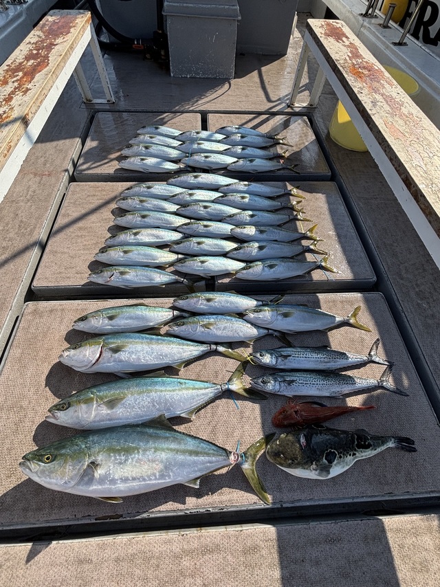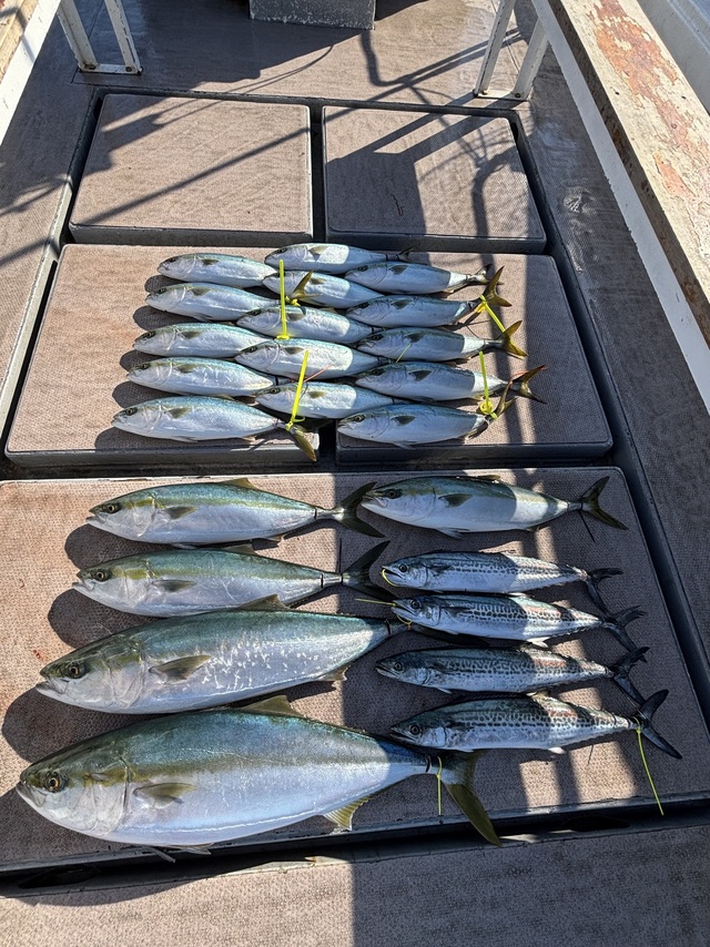65cm 合計1匹 メジロ 65~75cm 合計3匹 ブリ 80~85cm 合計3匹 ハマチ 50~60cm 3~10匹 最近の釣果です! 1.2月はジギング、ノマセで出船します! 青物まだまだ活性高いです! ご予約お待ちしております!