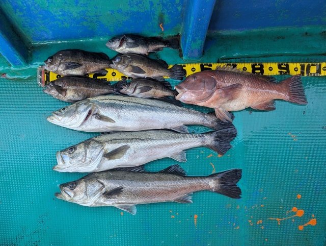 (ショウサイフグ)25~25cm 0~5匹 真鯛にスズキ、メバルにフグと色々釣れています。釣れたらサイズがかなり大きいですが、数はなかなか出ません。このような状況でもしっかり釣られている方は流石です!!皆様、本日hはお疲れ様でした。なかなか釣果が少なかった方、またリベンジお願いいたします☆