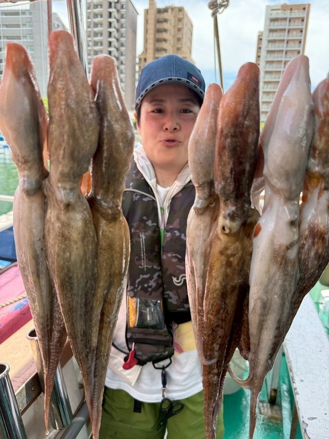 タコ便全体のトップは28、27、23、良い船では26人中19名がツヌケ、女性も大健闘!!明日も頑張ります!!!