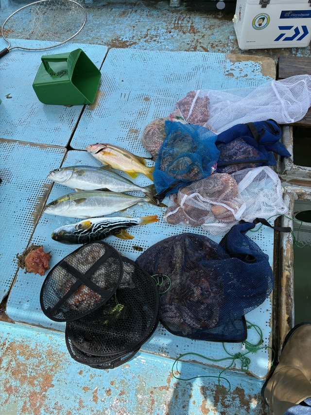 0.30~2.00kg 竿頭10匹 マダイ 38~50cm 竿頭6匹 ヒラアジ 22~35cm 竿頭11匹 サバ オニアジ お疲れさまでした(^-^) 引き続きサビキで鯛。鰺&真ダコ狙いでの二本立て コンディションの悪い中お疲れさまでした