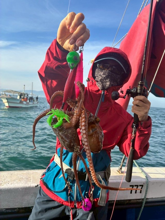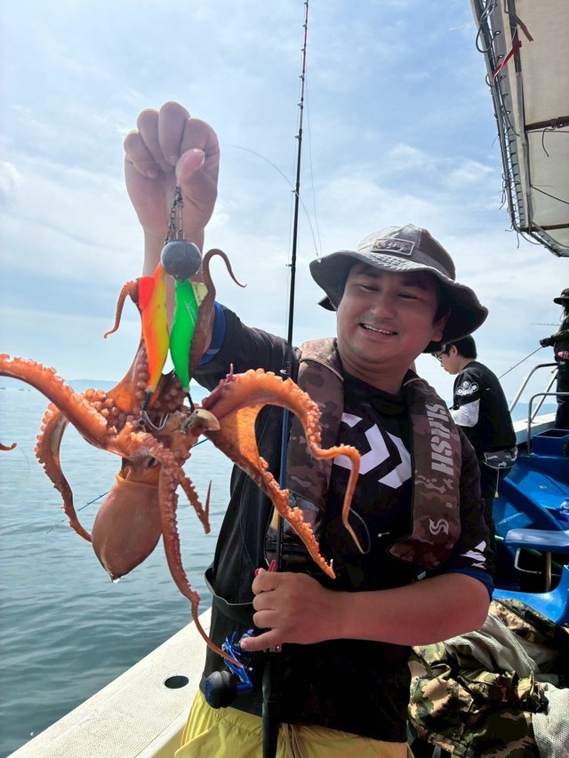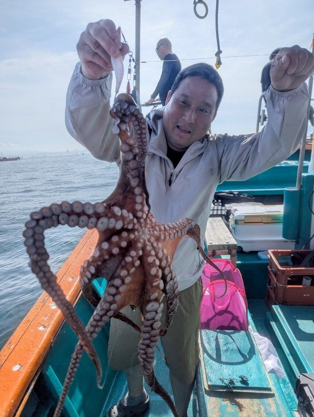 竿頭15匹 お疲れ様です。 ニコガオ丸です。 今日もタコ釣り便で出船致しました。 今日も開始早々から全員安打。 今日は、雨後でどうなるかと思われましたが、 朝からタコラッシュ。 止まらないラッシュ。 今日は、良い感じに釣れすぎて怖い。 リリースサイズもたまにいますが、 ほとんどが良い食べ頃サイズのタコばかり。 楽しく釣れてるところを見ると、 羨ましくなってしまいます。 お客様のために、 努力し、良いポイント見つけます。 まだまだ6月も空きあります。 5月も、平日ちらほら空きありますので、 沢山のご予約お待ちしております。 注意事項。 皆さん気をつけてください。 シカノセのタコ、200グラム以下のタコは、 リリース対象になりますので、 ご注意ください。 おめでとうございます。 プロフィールのリンクにも、カレンダーの空き状況の共有をしています。 ご確認お願い致します。 今日もリリースご協力いただいています。 ありがとうございます。
