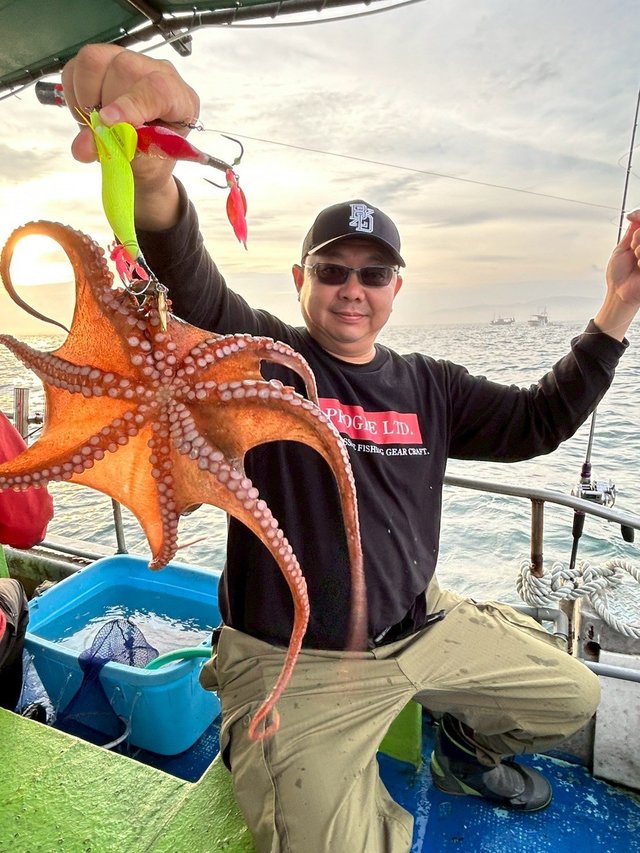 出港6時帰港13時30分。 V7westです、毎度お世話になります〜。 今日もタコ狙いで出船してきましたん。 マリーナ出て神戸空港手前から濃霧🌫️ 全く前がみえませぬwww 視界50mあるかないかくらい。 怖いし、ソロソロ走ってポイントイン! ベテランさんからお久しぶりのタコの方も全員安打でしたが、ちょっと今日のタコさん小さめでした。 誘い合った方は数も出ましたが、誘いやアタリエギカラーもコロコロ変わる感じで難しかったです。 間違い無くタコの生息数は増えてきてますヨ〜。