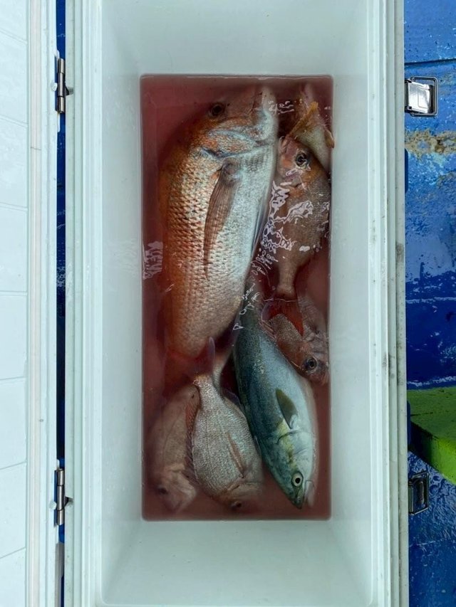 0.60~0.90kg 4~5匹 お疲れ様でした お二人様の釣果です。 朝1番当たり出していただきました。ありがとうございました。また遊びにお越しください