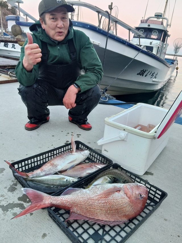 0.70~1.80kg 0~7匹 イナダ 1.00~1.50kg 0~4匹 クロダイ 1.00~1.50kg 0~1匹 今日はマダイ五目乗合に出船いたしました。 朝からマダイが当たりゲストも合わせて釣れました。 風も少し強くトップの方は持ち上げながら2枚バラシもあり残念でした。 明日明後日は船体整備の為お休み致します。 6日金曜日から出船いたします。