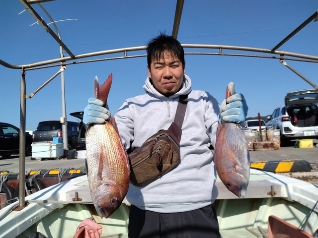 35~58cm 1~2匹 マサバ 44~50cm 1~4匹 マアジ 33~47cm 合計3匹 イサキ 24~34cm 合計2匹 ハマチ 48cm 合計1匹 ☆きょうも穏やかなぽかぽか陽気の小春日和になりました。今朝は上り潮からのスタートです。 ★朝マズメにさっそくマサバを釣っていただくことができました。同じポイントなのに前日はマダイばかりでしたが、きょうは丸々と肥えた良型のサバがヒットしました。その日によってわからないものです。また、サバの合間に鬼アジの顔も見ることができました。 ☆さて、サバを釣ったあと今度は上り潮が終わるまでの間にマダイを釣っていただくことができました。40cm以上の見事な良型が揃いました。58cmの立派な良型も1匹あがりました。 ★本日お越しのお客様は加太の胴突仕掛けの釣りが初めてで、皆様レンタルをご利用でしたが、良型のマダイとサバを釣っていただくことができました。穏やかな天気が初心者の方に味方してくれました。 ☆本日はどうもありがとうございました。