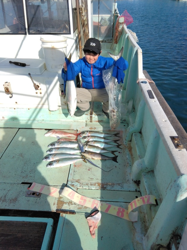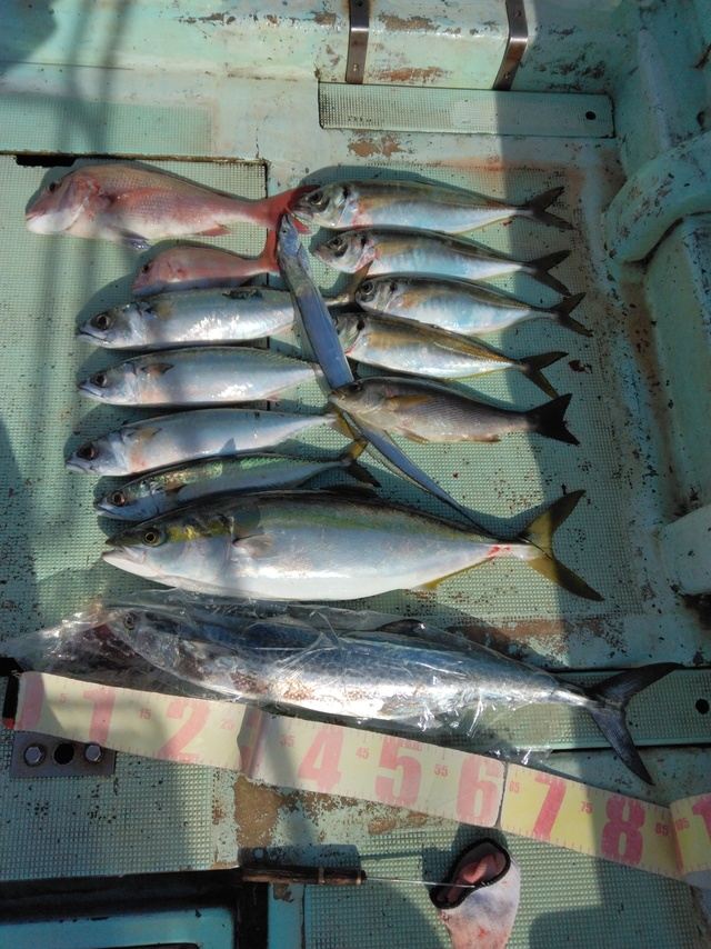 本日青物スタートでジグでもノマセでもよく釣れました。アマダイは当たり少なく撃沈。ありがとうございました。また宜しくお願いします。