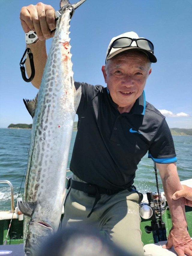 (ブリ)59~62cm 合計3匹 マダイ 44cm 合計1匹 マサバ 39~48cm 5~9匹 マアジ 37~39cm 1~2匹 イサキ 32~36cm 合計3匹 ☆太平洋高気圧が勢力を盛り返して再び猛暑の襲来です。 ★今朝は下り潮からのスタートです。朝マズメにマアジを釣っていただくことができました。でもすぐにアジの喰いはやんでしまいました。 ☆もう少し早く出船したかったのですが、初見のお客さんが遅刻して出船が遅れました。他のお客様に大変ご迷惑をおかけしました。 ★せっかく朝マズメの潮を楽しみにしてお越しくださっているのに初見さんのおかげで飛んだ迷惑です。時間は出船時間ではなく集合時間でお願いします。集合が遅れれば出船時間もそのぶん遅くなりますので。 ☆さて、その後しばらく我慢の釣りになりましたが、後半になるとサバを釣っていただくことができました。合間にマダイ、イサキ、メジロの顔も見ることができました。 ★本日はどうもありがとうございました。