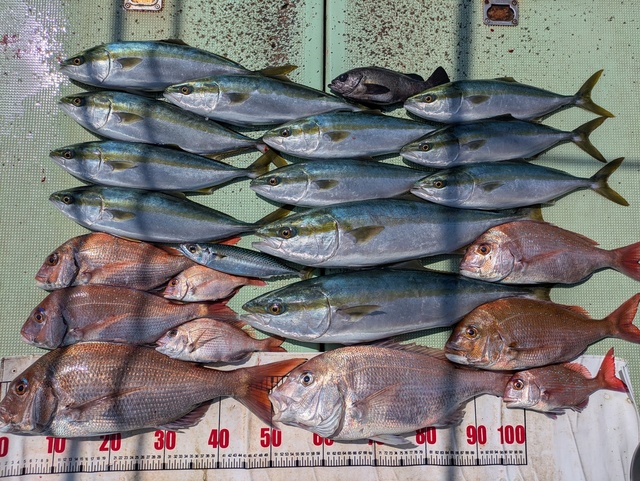 (ブリ)47~50cm 合計4匹 アジ 40~44cm 合計18匹 マサバ 45~50cm 合計11匹 ありがとうございました!