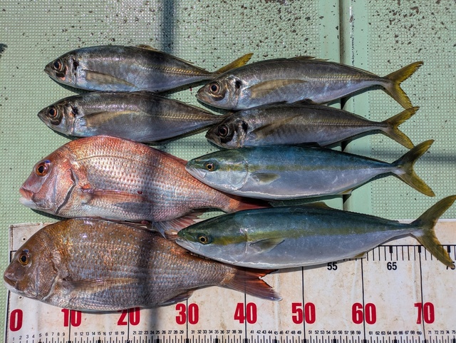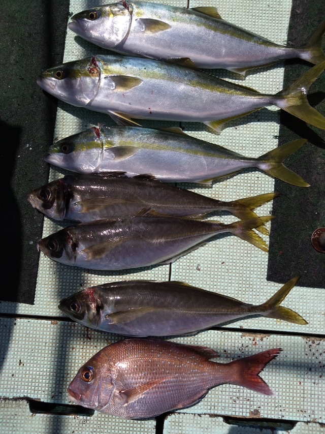 (ブリ)47~50cm 合計2匹 タイ 46cm 合計1匹 アジ 37~45cm 合計6匹 ありがとうございました!