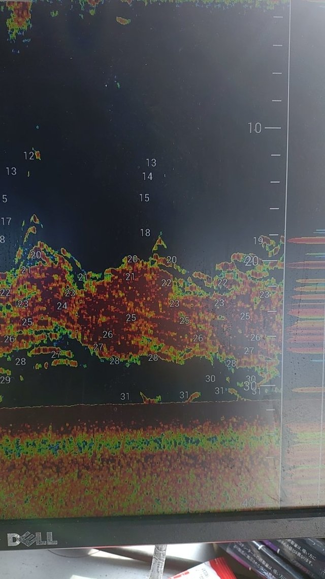 (ブリ)48~52cm 1~3匹 マダイ 36~56cm 2~3匹 本日はどうもありがとうございました。 ☆今週は天気の変化がめまぐるしく、前日は強風の寒波でしたが、今朝は穏やかな海に戻っていました。早朝船に乗るとデッキに霜が降りており、危うくツルッと滑りそうになりました。 ★今朝は下り潮からのスタートです。朝マズメにマダイを釣っていただくことができました。 ☆その後はハマチを狙いましたが、きょうはなかなか転流してこず長い潮待ちになりました。 ★上り潮が流れてくると、底にハマチらしき魚影の塊が色濃く映ってくるのですが、全然口を使いませんでした。 ☆ときおり小さな魚影が浮いて映ったところでハマチを釣っていただくことができました。先日に比べてハマチも釣りにくくなりました。 ★とはいえ、今朝は下り潮が短い時間しか残っていませんでしたが、週末は下り潮がしっかり残っているぶんマダイが釣れればと願っています。