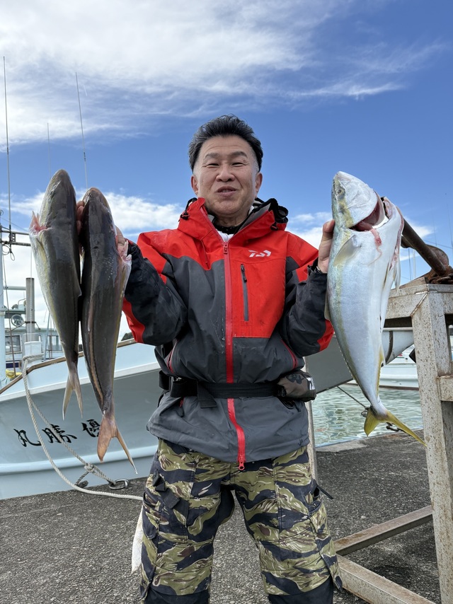 アカヤガラ ツバス ホウキハタ オオモンハタ ヤイトガツオ 今日も落とし込み釣りに出船しました。 餌の子アジの反応小さく、乗せるのは苦戦しましたが、乗れば高確率でヒットするのと、何名かのお客様アジ買ってきてたので終わって見ればカンパチ67㎝から42㎝33匹の大漁でした。明日は天気イイですが、今でお客様いません、 乗り合い2名様から出船しますのでよろしくお願いします。