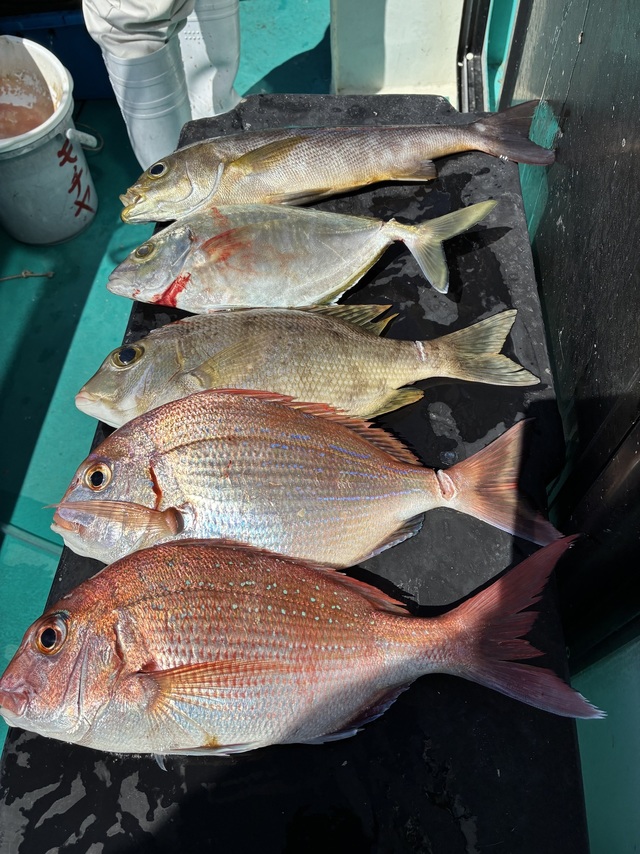 28~35cm 合計4匹 マダイ 28~38cm 合計5匹 オキアミ釣りに出船しました! 真鯛は喰い渋く難しい感じでしたが後半ポイント移動後、メイチダイにアカハタ、デカイサギ混じりで釣れました! イサギ多めでしたがお土産に! オキアミ釣り! ご予約受付中です。 気軽にお問い合わせ下さいm(__)m