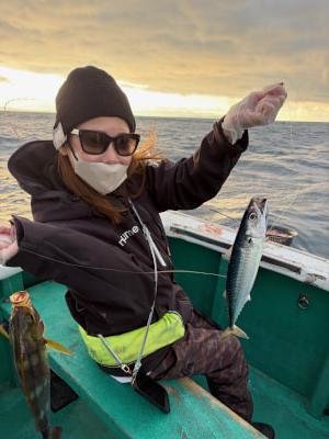 (イサキ)サバ 今日はオキアミ五目釣りに出船しました。風強く釣り辛い状況でしたが、良型イサギ、サバなど釣れて楽しめました。明日は天気良さそうです。