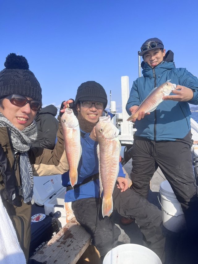 40cm 合計1匹 貸し切りアマラバメイン大人3名様+子供さん 久しぶりの出船 みなさん初アマダイでレンタルタックルの方が半数、アマラバメインで頑張ってくれました 根気よくやってくれて、大人は全員安打でしたが、子供さん寒くて竿置いちゃって釣れなくてごめんなさい また暖かくなったらリベンジ来て下さい