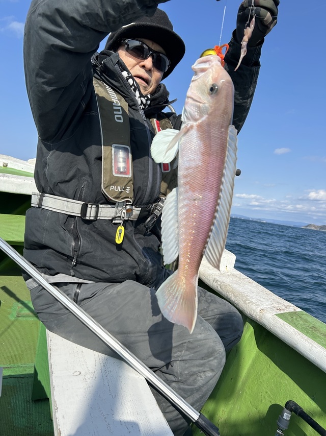最大44cm イトヨリ 甘鯛狙い。 久しぶりの釣り日和。ぽっかぽか。 少人数でゆったりフィッシング。 エサはホタルイカ、良く釣れました。 今の時期は脂ノリノリの高級白甘鯛。是非狙いに来て下さい。