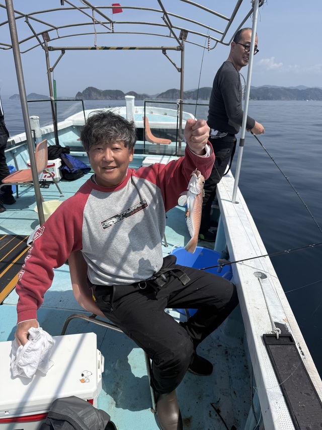 25~38cm 0~1匹 ホウボウ 40cm 合計1匹 イトヨリ 25~30cm 0~1匹 アオハタ 40cm 合計1匹 シロアマダイ便釣果報告 今日は若潮 朝から船は流れるのですが 本命シロアマダイ なかなか口を使ってくれません 良く口を使ってくれたのは 白サバフグ しかも猛攻でなかなか苦戦… それでもしっかり本命キャッチできました! シロアマダイ3匹 その他に イトヨリ・アオハタ・ホウボウとにぎやかでした 水温18.6℃ 今後さらに期待できそうです ご乗船ありがとうございました またのチャレンジお待ちしております!