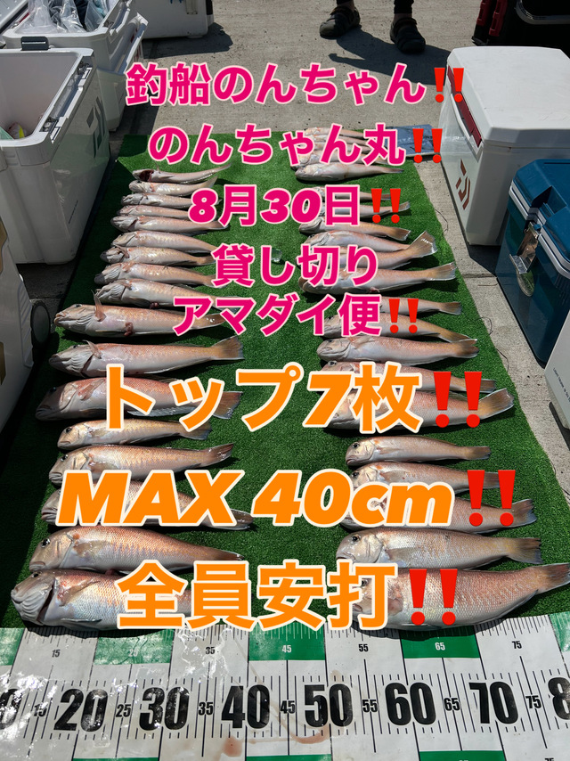 30~47cm 合計34匹 本日のアマラバ便は、大型アマダイ(47センチ前後)も多数上がり楽しめました。