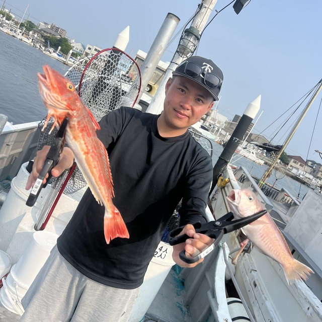 30~35cm 10~12匹 イトヨリ 20~25cm 1~2匹 乗り合い2名で出船しました。 初めての白甘鯛釣りでしたが、朝からポツリポツリ釣れ良かったです。 途中で満足したので、お客様の希望で3時間の釣行でした。またのお越しお待ちしております。