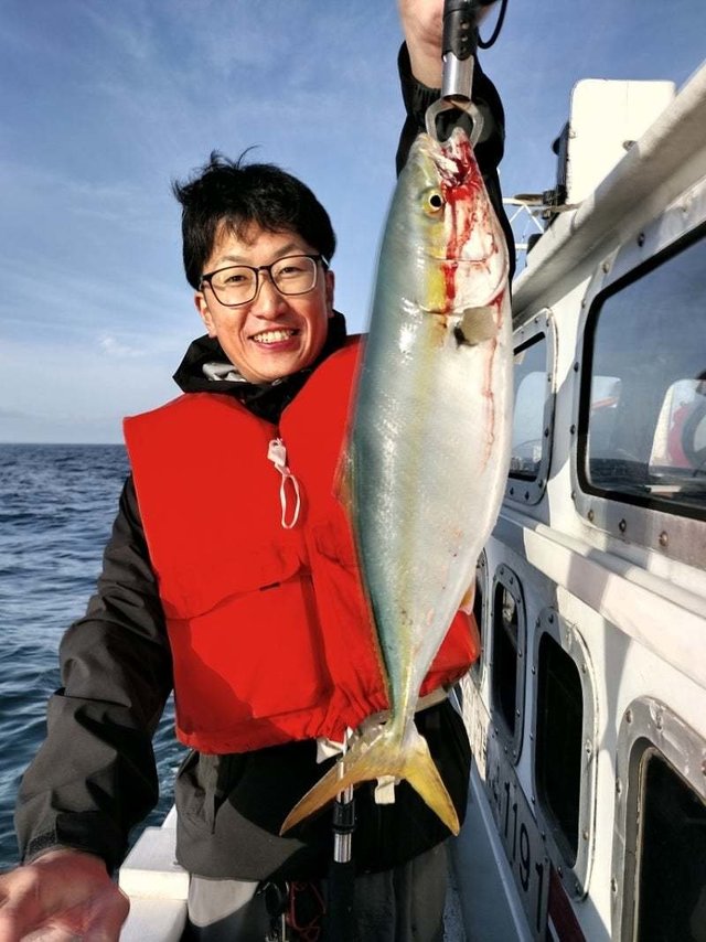 30~45cm 合計4匹 ハマチ 50~55cm 合計10匹 サバ 40cm 合計1匹 ジギング&甘鯛でした。 朝イチポイント到着して 反応探すも昨日の反応、、、ない、、、。 ウロウロ探すとポロッと映り 流すも潮がない、、、、。 風もない、、、、船流れない、、。 そうこうしてる内に 潮少し入ってきて パタパタと連続ヒットもあり テクニカルでしたが 全員安打して頂けました! その後は甘鯛へ。 こちらもまたまた潮なし、、、。 と思いきや青物混じり本命甘鯛と 連続ヒット! これはええんちゃうのん?と思ったら また当たり止まり 転々と叩きながら一瞬の時合いで ナイスキャッチでした! 難しかったですが上手く合わせて 釣って頂けました! お見事でした! 本日はありがとうございました! またお待ちしております!