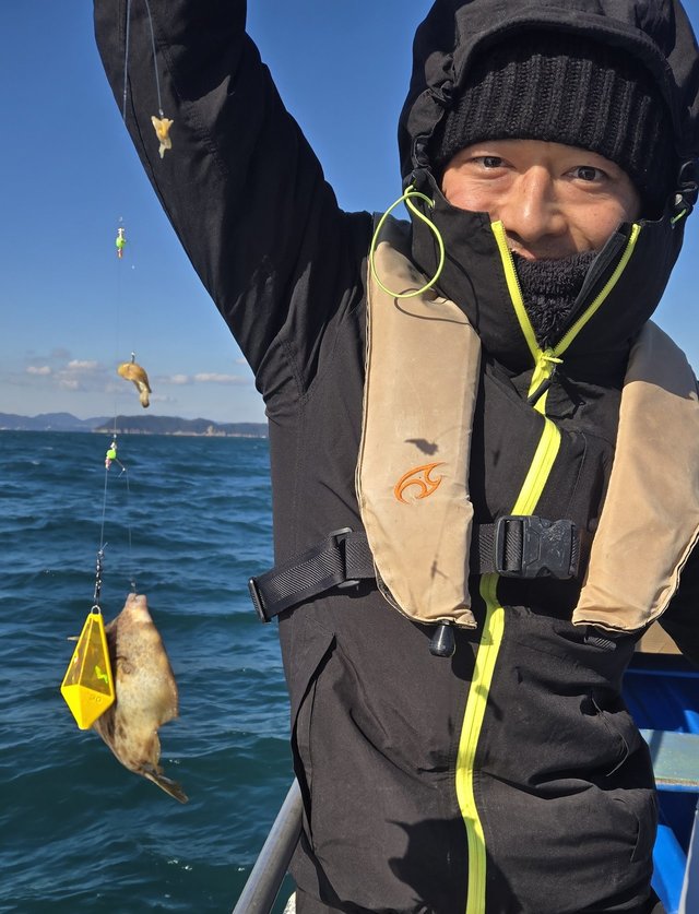 46cm 合計1匹 少人数カワハギとアマダイ 予報より波風厳しくザブザブ みなさん初アマダイでしたが、波風キツイ中釣ってくれて良型メインでトップ3枚 カワハギはサイズ狙いのポイントがザブザブなので数釣りポイントで遊んで貰って何とか釣って貰えました 波風厳しい中少し時間短くなりましたが、どちらも釣って貰えて良かったです アマダイは気配良さそうですので、アマダイのみなら良型メインでトップ10枚釣れそうですね
