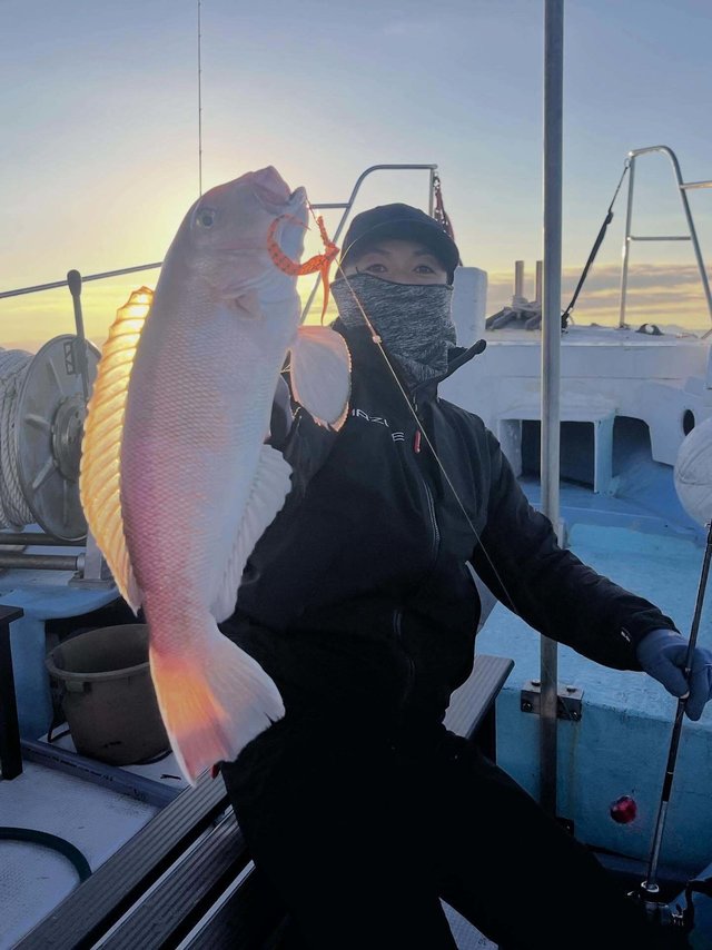 (イトヨリダイ)40~41cm 合計2匹 マダイ 38cm 合計1匹 シロアマダイ 35~40cm 合計4匹 本日は高仕掛けアマダイ便にお越しいただきありがとうございました。 朝イチ高仕掛けのポイントへ行きましたが、北の風が爆風で、当たりはあるが仕掛けの扱いに苦戦され、風裏に移動するが、真鯛1枚。アマダイポイントへ移動しましたが、潮悪く苦戦し終了しました。本日はすみませんでした泣泣泣 またリベンジお待ちしております。