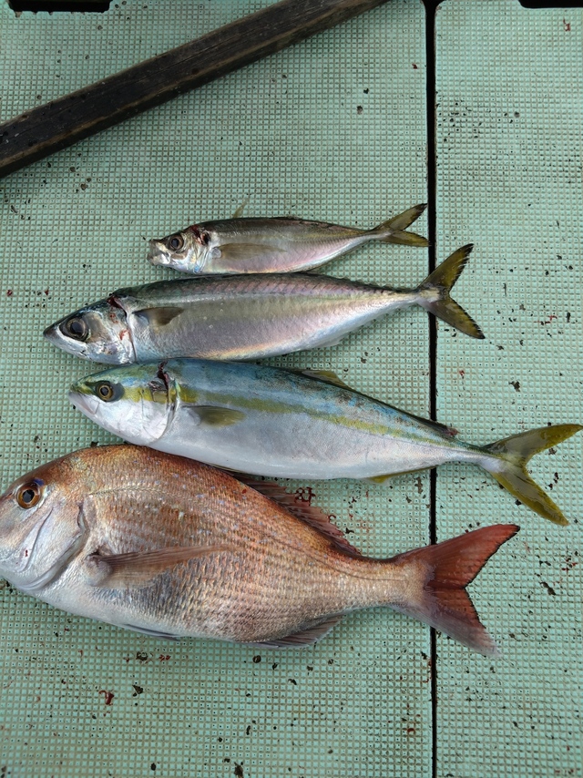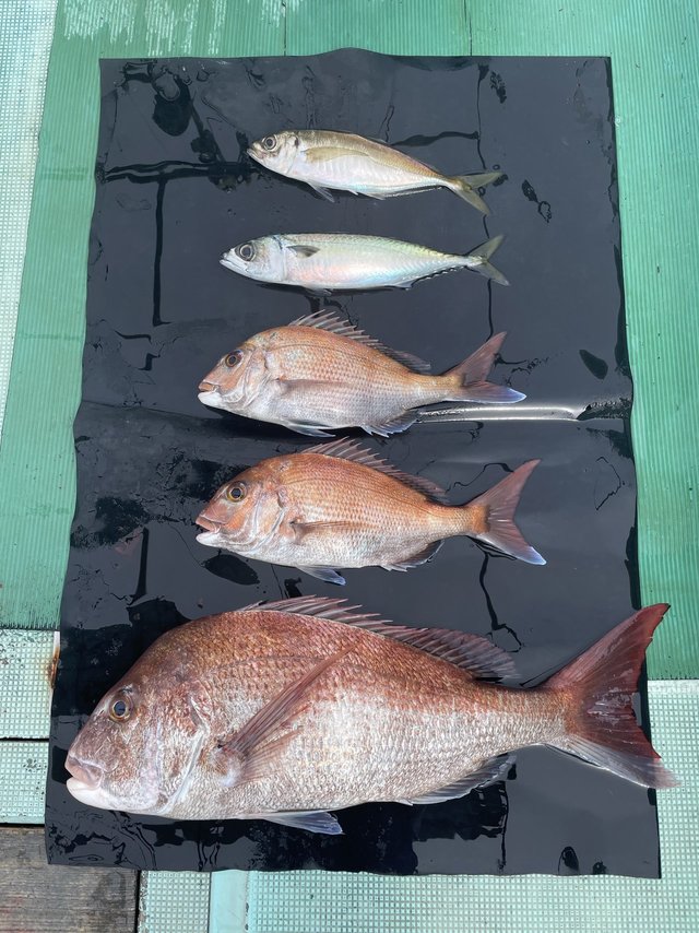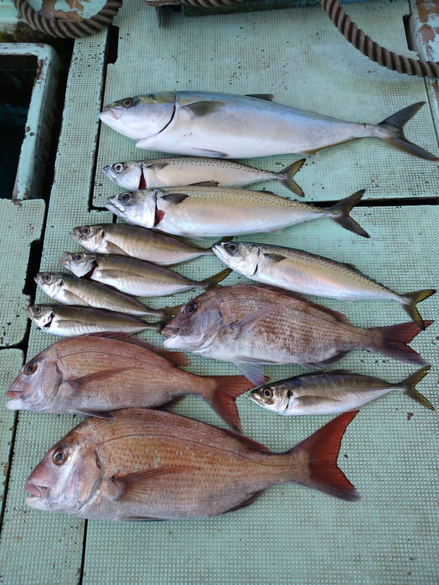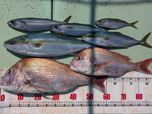 37~40cm 合計6匹 タイ 33~45cm 合計8匹 サワラ 82cm 合計1匹 アジ 43~46cm 合計3匹 イサギ 33~39cm 合計4匹 ありがとうございました!