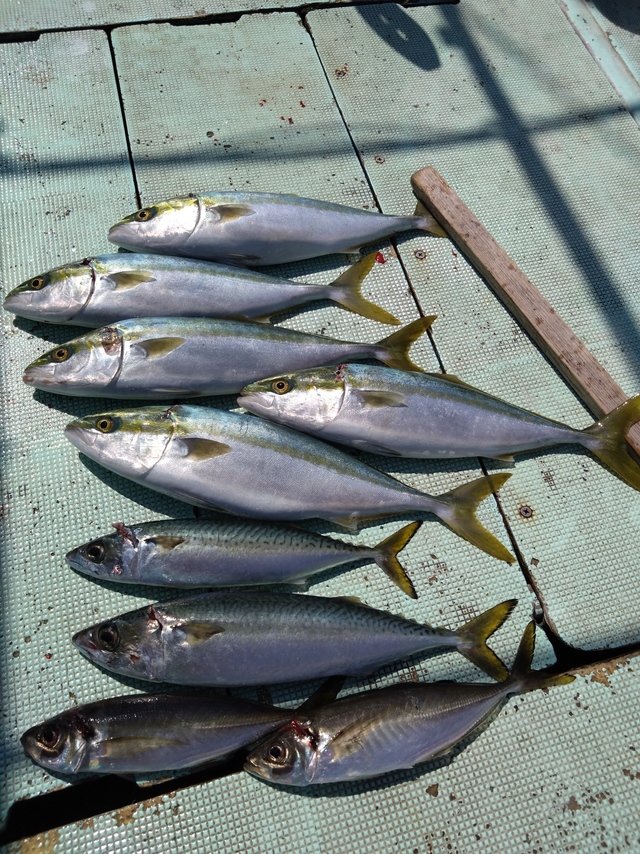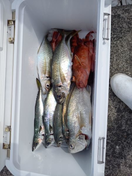 36~37cm 合計2匹 タイ 39~58cm 合計5匹 イサギ 34cm 合計1匹 ハマチ 49cm 合計1匹 アジ 29~46cm 合計2匹 ありがとうございました!