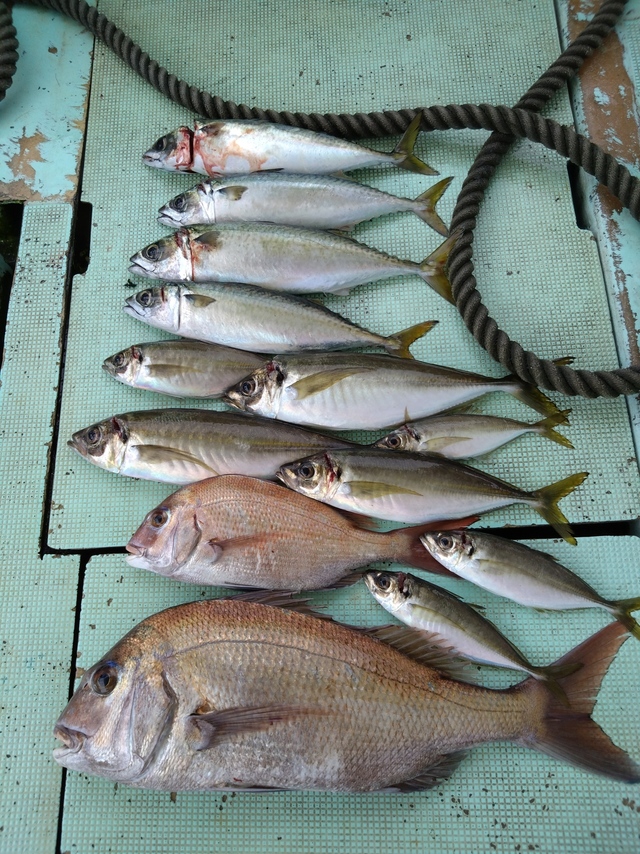 (マサバ)40~45cm 合計4匹 タイ 40~61cm 合計2匹 アジ 26~45cm 合計7匹 ありがとうございました!