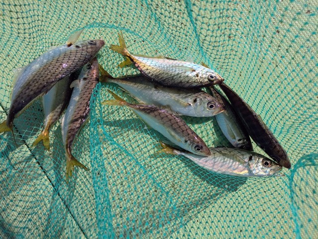 (マサバ)40~40cm 合計3匹 マダイ 40cm 合計1匹 マアジ 18~22cm 合計12匹 真鯛は渋めだったが、中型真アジと、良型真サバに度々ヒット!(^^)/