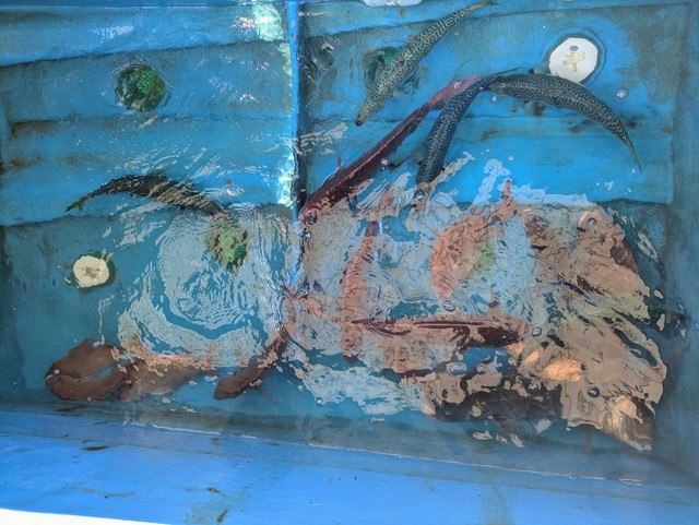 35~45cm 合計2匹 マダイ 63cm 合計1匹 イサキ 35cm 合計1匹 63センチの真鯛は、高い水温の為ギリギリ、神経締めが出来たほど!最近は帰港後、横たわる魚が多い…(T_T)