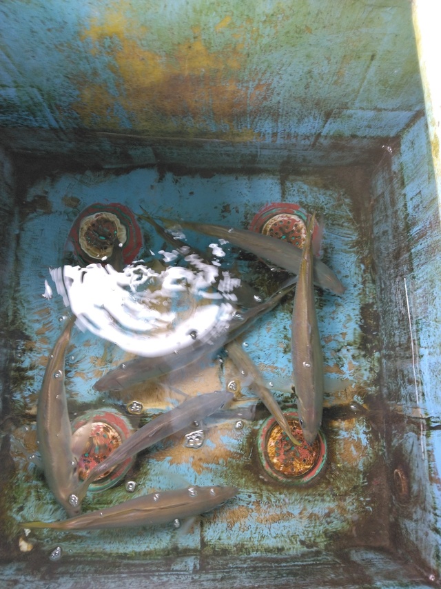 (マサバ)35cm 合計1匹 チャリコ アジ 25~33cm 合計34匹 タイ 37cm 合計1匹 タイ37cm1匹、 サバ35cm1匹、 アジ25~33cm34匹、 チャリコ、まじり。