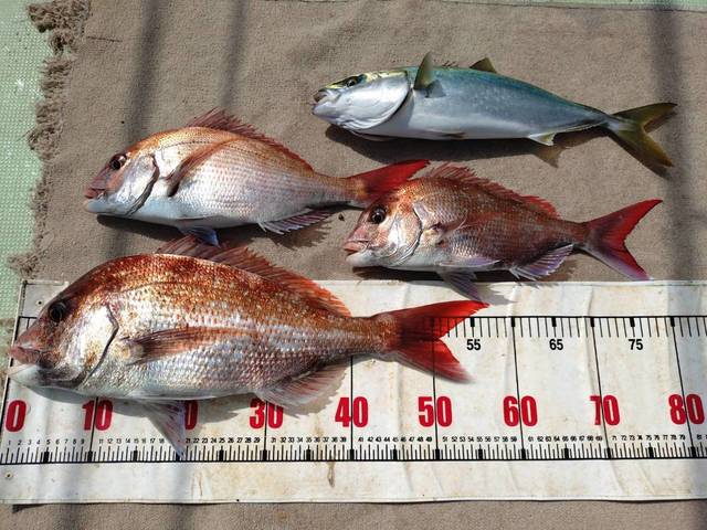 40cm 合計1匹 タイ 40~58cm 合計10匹 メジロ 68cm 合計1匹 ハマチ 48cm 合計1匹 アジ 25~38cm 合計6匹 ありがとうございました!
