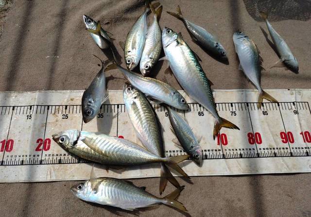 マアジ ハマチ 小物釣り。 真鯵・真鯖・ハマチ。 釣果はもお一つ、頑張って。 当たれば良型の真鯵真鯖も釣れますが、 なかなかHITせず厳しい1日でした。