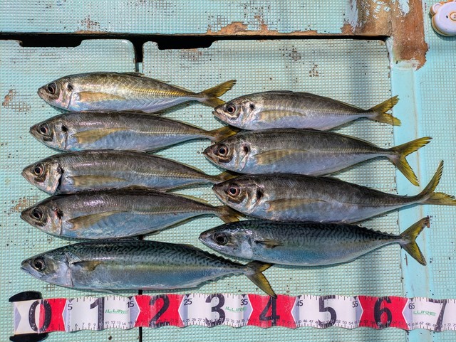 (マサバ)37cm 合計1匹 ハマチ 50~50cm 合計2匹 アジ 23~40cm 合計10匹 シロアマダイ 23~39cm 合計3匹 本日午前便も午後便も大撃沈でした。渋々な釣果になりすいませんでした。またリベンジお待ちしてます。ありがとうございました。