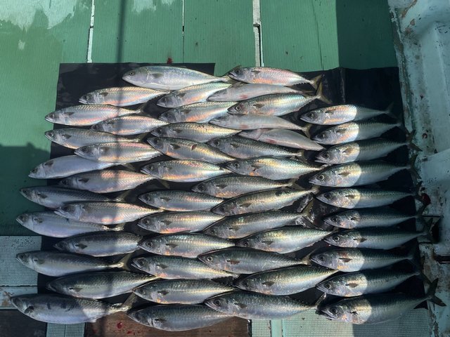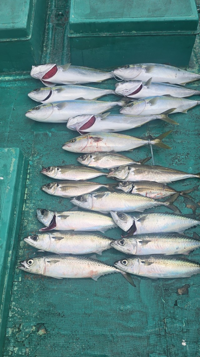 (マサバ)47cm 合計1匹 ハマチ 50cm 合計1匹 アジ 40cm 合計1匹 アジ五目便。アジの時間までキャスティングで青物に遊んでもらい、アジは今日は苦戦でした。僚船達は釣れてる様なので、パターンかな。帰りにサバの反応見つけて、少しお土産釣ってもらいました