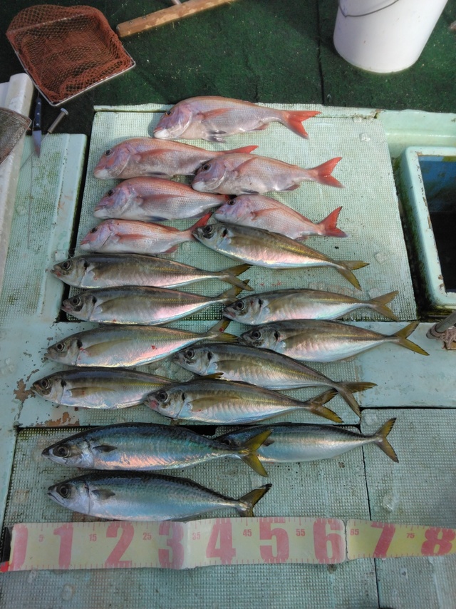 40cm 合計1匹 マダイ 25~45cm 合計11匹 マアジ 28~48cm 合計16匹 友成様、本日はありがとうございました。