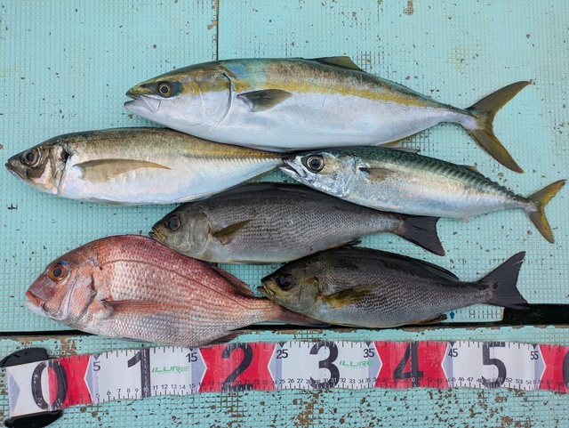 36cm 合計1匹 タイ 35cm 合計1匹 ハマチ 50cm 合計1匹 アジ 39cm 合計1匹 イサギ 33~35cm 合計2匹 ありがとうございました!