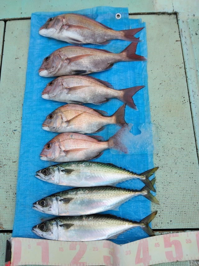 (マサバ)37~51cm 合計17匹 タイ 38cm 合計1匹 アジ 30~46cm 合計3匹 ありがとうございました!