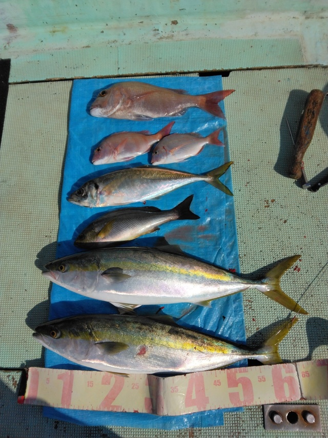 21cm 合計1匹 マダイ 24~44cm 合計2匹 マアジ 47cm 合計1匹 イサギ 35cm 合計1匹 ハマチ 64~66cm 合計2匹 西岡様、本日はありがとうございました。