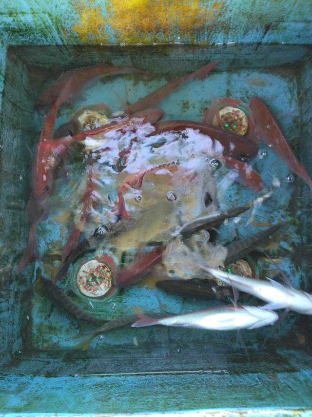 30~30cm 合計2匹 ハマチ 50cm 合計1匹 マダイ 30~45cm 合計4匹 イサギ 15~35cm 合計6匹 久々の大釣り!面白かったよ~と、辻内さん。イサキの大きさにビックリ!!