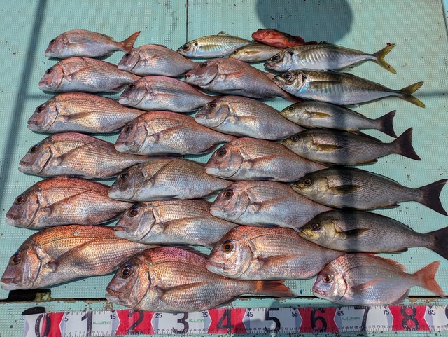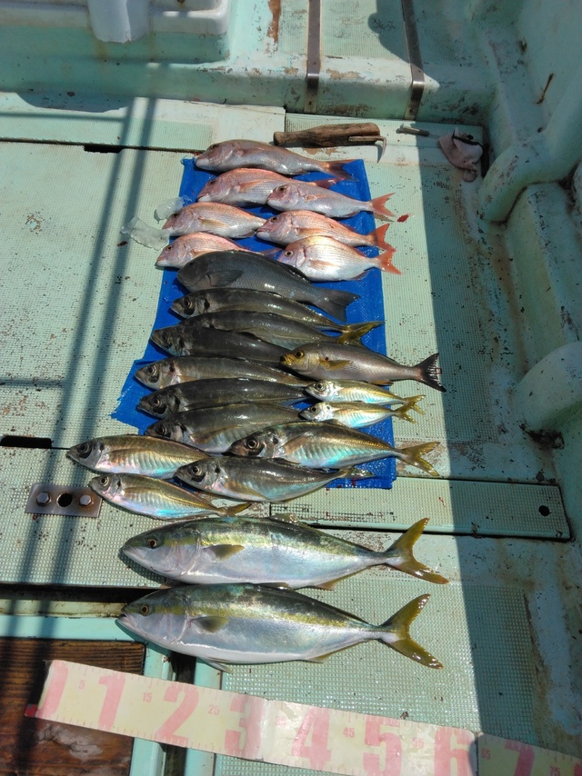 34~37cm 合計5匹 マダイ 28~49cm 合計23匹 イサギ 33~40cm 合計4匹 ツバス 56cm 合計1匹 マアジ 30~43cm 合計6匹 F様、本日はありがとうございました。