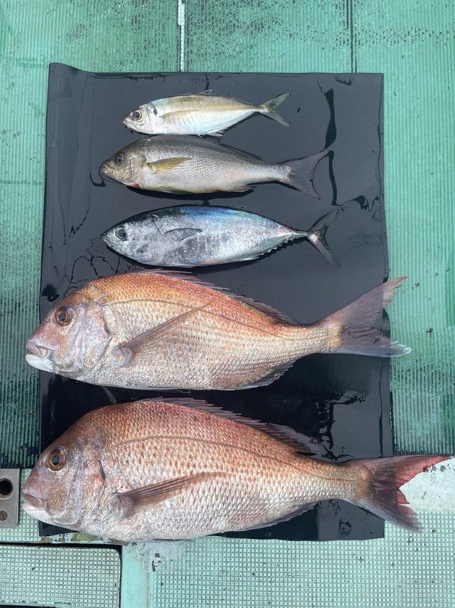 (クロマグロ)55cm 合計1匹 メジロ 80~85cm 合計3匹 沖合いの沈船での概況、釣果。 概況北西の風1、5m。 水温22℃、上り潮。 今日もヒラメの当たりあって早や合わせで釣り損ないやバラシもありましたがメジロ、ヨコワが釣れました。 仕掛け固定式ハリス10号一本針り錘50号 (孫針りスバルなしの一本針り)。 餌活小アジ(沖でお客さんに釣って貰います) 餌の小アジは当たりあっても直ぐに上げずに少し待って上げると追食いして何匹も掛かります。