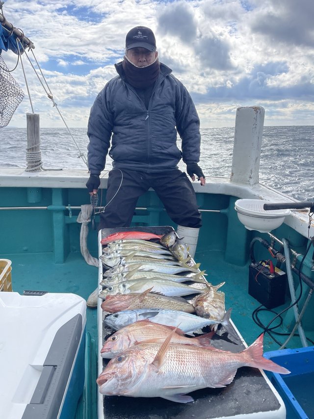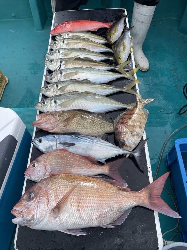 (スマ)41cm 合計1匹 マダイ 32~49cm 合計3匹 オオモンハタ 35~38cm 合計3匹 マアジ 32~43cm 3~10匹 オキアミ釣りに出船しました! 朝一マアジポロっと釣れましたがその後渋々でした… でも真鯛にヤイトガツオゲットでした! 後半移動しながら真鯛にイシダイ、メイチダイにイサギなどゲットでした! 皆様お土産になりました! 2024年。 沢山のお客様にご乗船いただきましてありがとうございました! 来年も皆様に楽しい釣りをしていただけるよう頑張っていきますのでどうぞよろしくお願いします。 皆様良いお年をお迎えください! 新年は3日より出船しますのでよろしくお願いします。