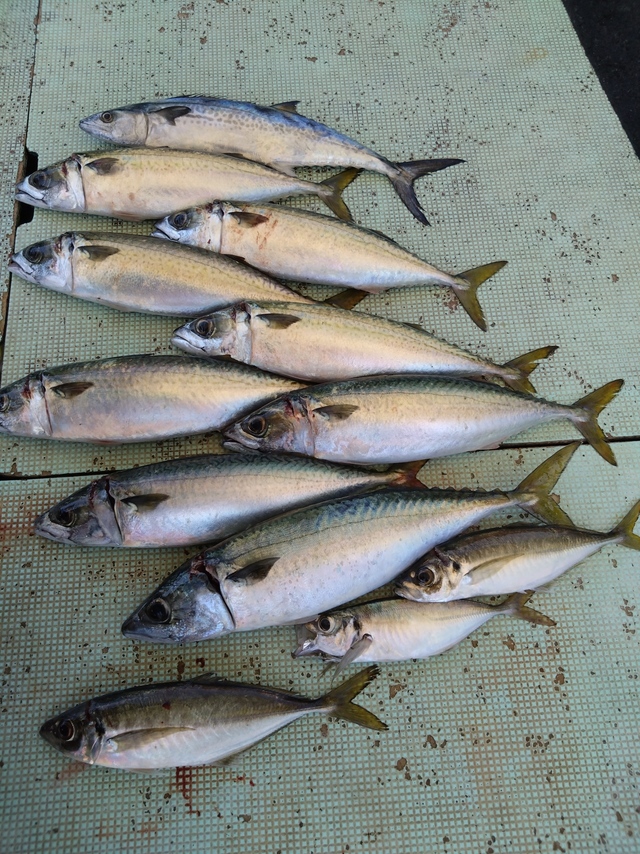 (サワラ)56cm 合計1匹 タイ 40~56cm 合計5匹 アジ 32~39cm 合計8匹 サバ 41~46cm 合計2匹 ありがとうございました!
