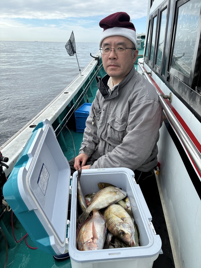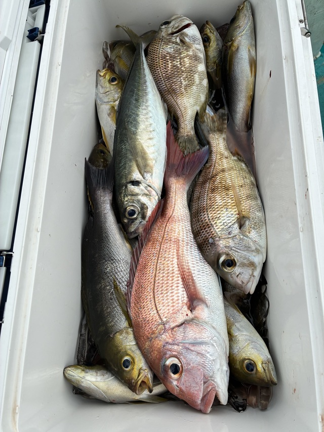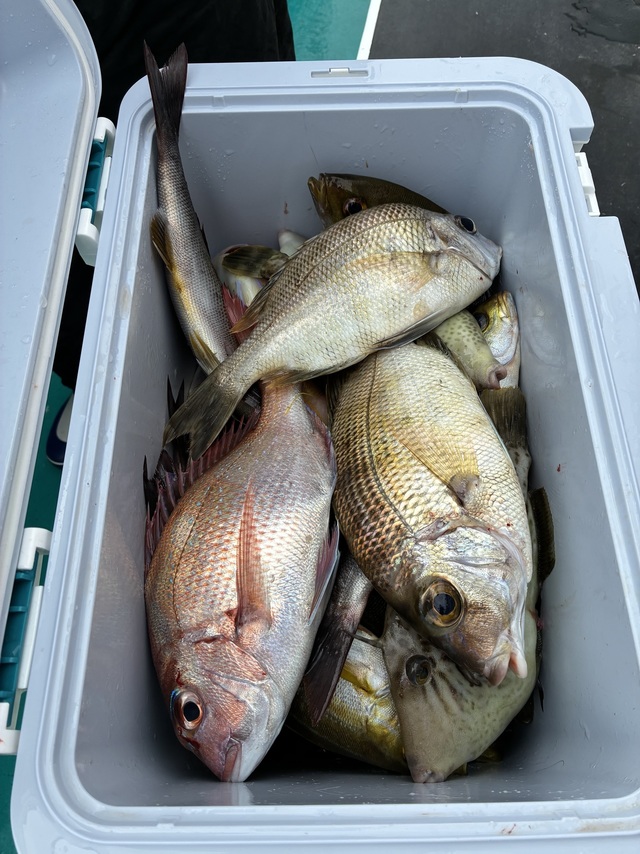 31~35cm 合計5匹 マダイ 28~30cm 合計5匹 グレ 36cm 合計1匹 チダイ 36cm 合計1匹 オキアミ釣りに出船しました! 風と潮反対で自船の位置安定せずフラフラで喰いも渋々で難しい感じでした… アタリ少なく厳しい状況の中でしたが頑張って釣ってくれました! 真鯛にチダイ、メイチダイにグレ、アカヤガラなどの釣果に。 今後状況上向きに期待です!